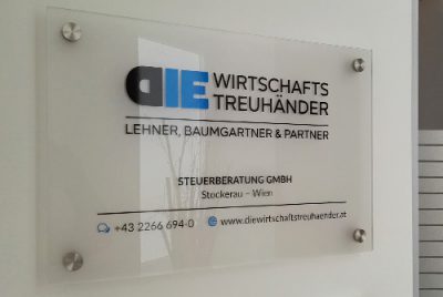 Acrylschilder in 5 – 10 mm Stärke werden vorder- oder rückseitig beschriftet. Für die Montage verwenden wir Wanddistanzhalter aus Edelstahl.