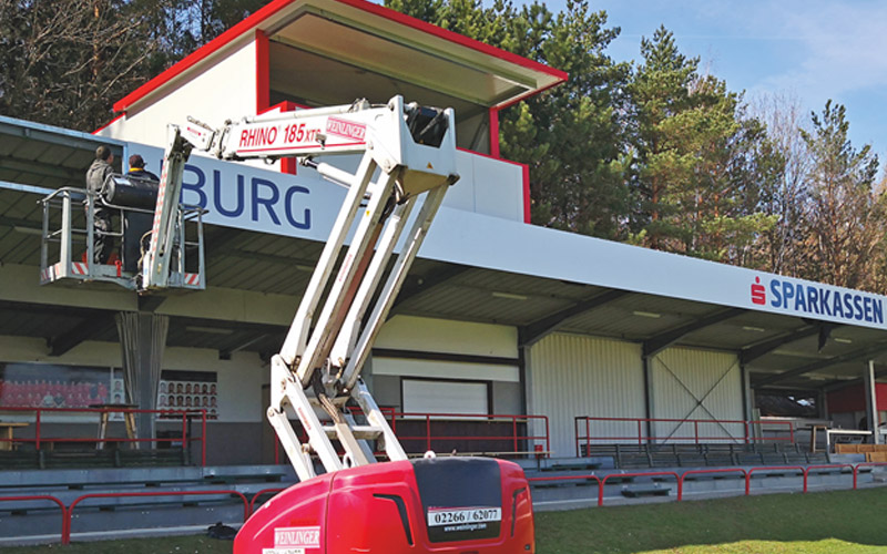Die klassische Werbeform an Sportstätten. Natürlich aus Aluverbund mit Schutzlaminat gegen Abrieb. In der Regel 3×1 oder 4×1 Meter.